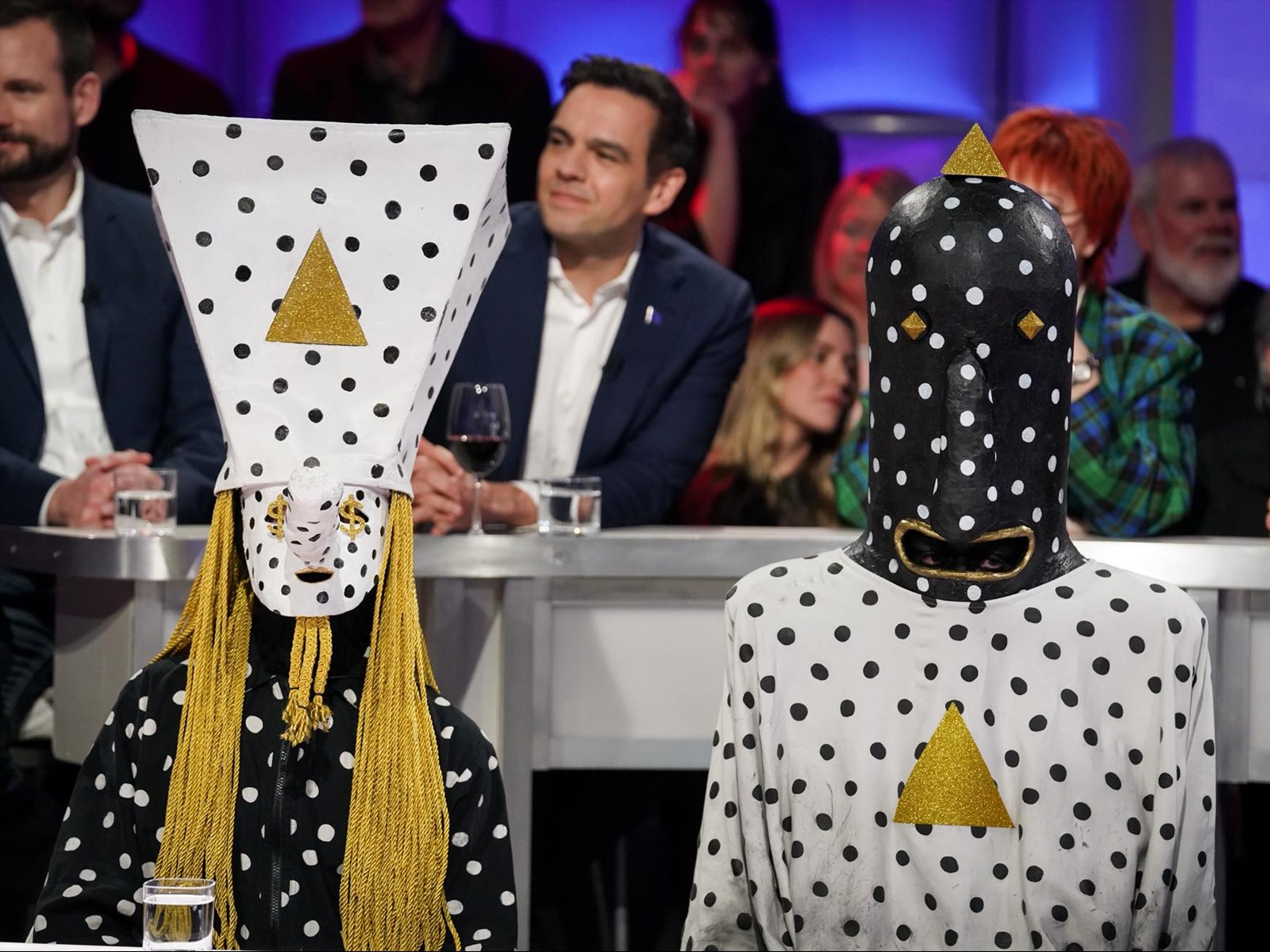 Sur scène, les deux membres portent d’énormes masques en papier mâché et des costumes extravagants, transformant chaque concert en performance à mi-chemin entre le spectacle musical et l’art visuel.