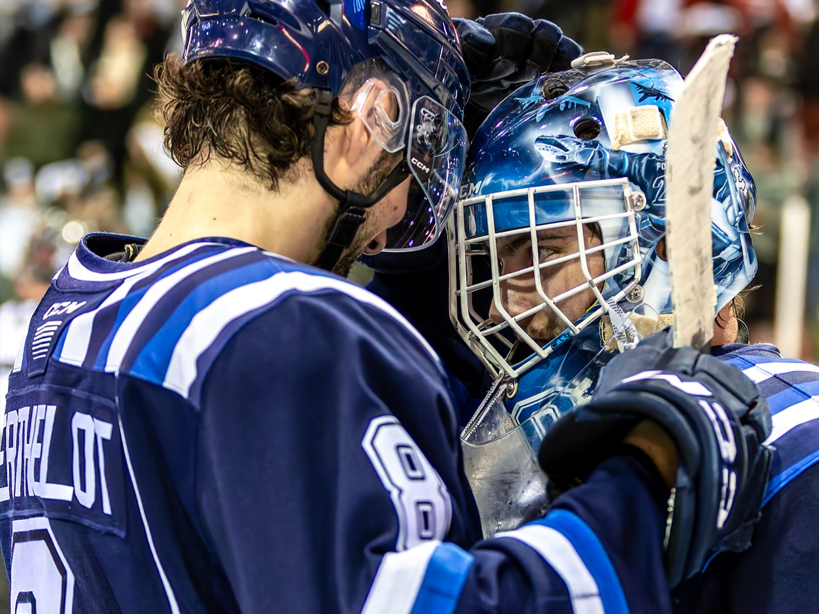 Les Bleus doivent jouer du hockey de rattrapage, chose qu’ils n’ont pas beaucoup faite au cours des derniers mois. Beaucoup de rondelles envoyées en direction du filet mais très souvent, les joueurs des Mooseheads les bloquent avant de se rendre au gardien.
